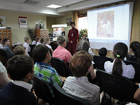 28 мая, в рамках празднования 700-летия со дня рождения преподобного Сергия Радонежского, в библиотеке культурно-досугового центра «Мечта» г. Орехово-Зуево состоялся очередной открытый урок «Хранитель земли Русской», который провел ответственный за религиозное образование и катехизацию в Орехово-Зуевском благочинии, клирик Богородицерождественского собора г. Орехово-Зуево священник Владислав Решетников. На уроке присутствовали учащиеся третьих классов городской общеобразовательной гимназии № 15 и педагоги учреждения.