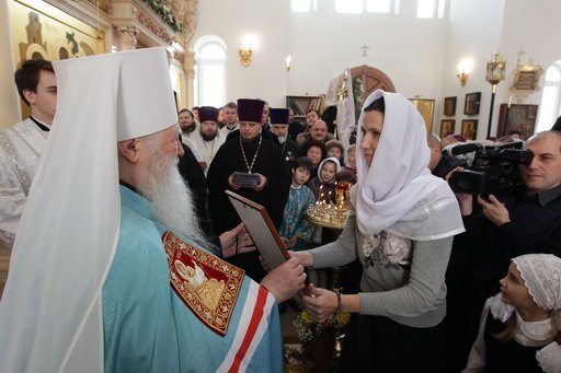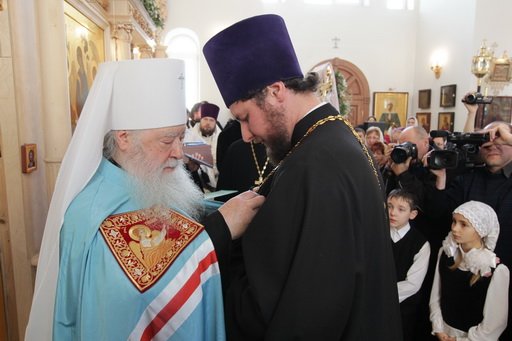После своего слова Владыка митрополит вручил церковные награды особо потрудившимся в деле строительства храма. Настоятель прихода протоиерей Роман Голубинский был удостоен Святейшим Патриархом Московским и всея Руси Кириллом ордена Русской Православной церкви Преподобного Серафима Саровского III степени. Среди награжденных были благотворители храма: