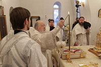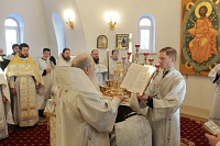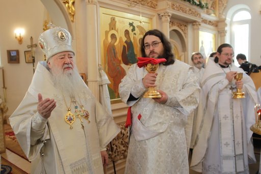 После сугубой ектении Владыка митрополит совершил молитву о мире на Украине. Также Его Высокопреосвященство в этот день совершил священническую хиротонию диакона Вячеслава Зуева, клирика Троицкого храма города Пушкино.