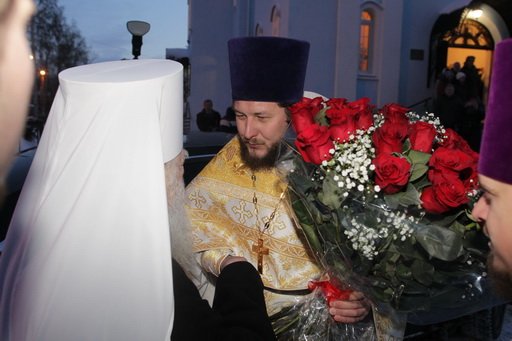Я хотел бы, Владыка, сердечно Вас поблагодарить за то, что Вы оставили все свои дела и прибыли на этот приход, в Пушкино и возглавили освящение этих святых храмов. 15 лет тому назад протоиерей Иоанн Монаршек, благочинный тогда Пушкинского округа, совершил закладку этих храмов. И благодаря его ревностному старанию ни один храм был построен на нашей Пушкинской земле. И вот, Владыка, Вы на протяжении этих лет освящали много церквей в Пушкинском районе. Это говорит о том, что наше благочиние, которое имело в советское время всего 8 храмов, на сегодняшний день очень сильно расширилось, и теперь оно составляет множество храмов. Более 3 лет тому назад Вы пожелали разделить наше благочиние на два и назначили меня недостойного на должность этого Пушкинского благочиния. Я буду стараться по мере сил прикладывать все свои старания, чтобы наша Пушкинская земля действительно процветала, и чтобы здесь было как можно больше Пушкинских храмов, и чтобы Вы как можно чаще совершали их освящение.
