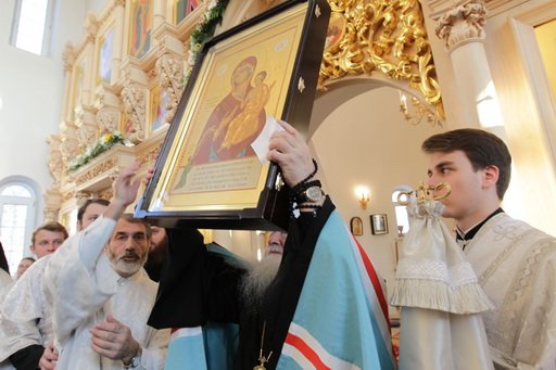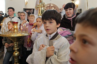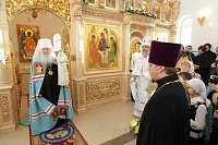 Сегодня был освящен храм в честь иконы Божией Матери „Нечаянная радость“. С самого начала строительства храма строители, благотворители, труженики испытывали радость в том, чтобы кирпичик к кирпичику созидался этот храм. Но сегодня особая радость у нашего прихода. Потому что этот храм, подобно человеку, который в таинстве Крещения обретает Святой Дух, становится новым человеком, у него начинается новая благодатная жизнь во Христе, — так и сегодня Дух Святой сошел в этот храм и сделал его домом молитвы, домом Божиим.