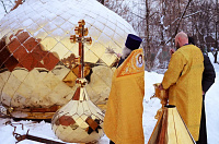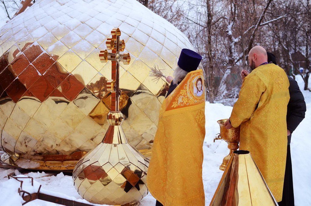 27 декабря настоятель Боголюбского храма поселка Дубровский священник Павел Крысанов в сослужении настоятеля Троицкого храма поселка Измайлово протоиерея Димитрия Шпанько совершил чин освящения крестов для куполов строящегося храма в честь святой великомученицы Марины поселка Битца. На освящении присутствовали представители администрации района, благотворители и местные жители.