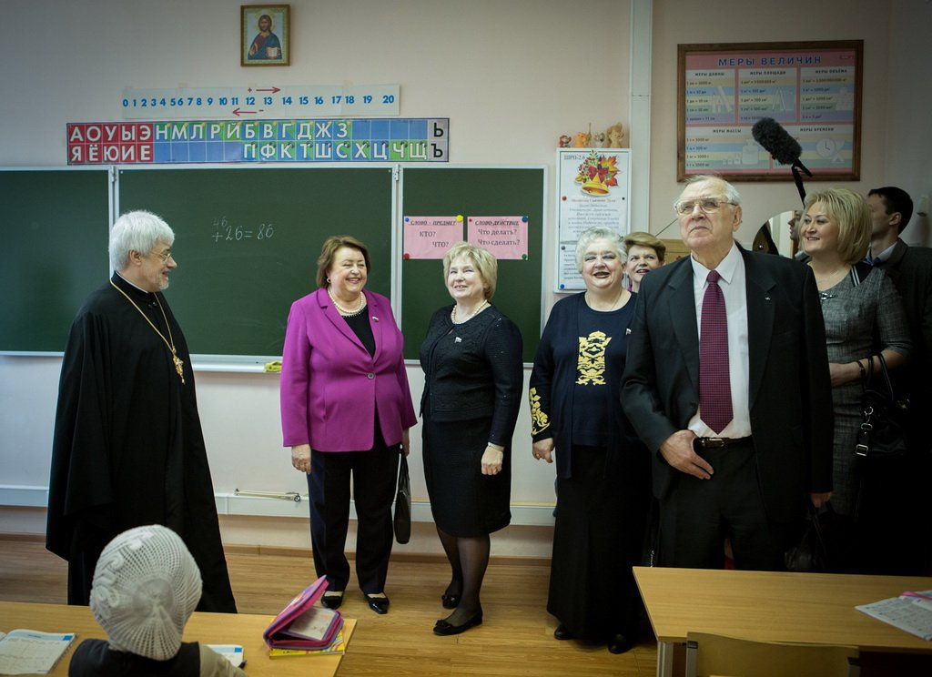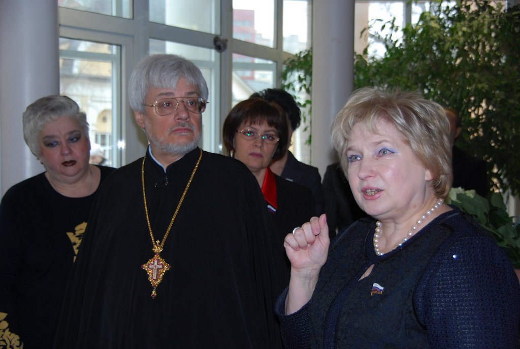 30 марта в Одинцове состоялось выездное заседание комитета по науке, образованию и культуре Совета Федераций Федерального собрания Российской Федерации. В рамках программы этого дня сенаторы во главе с председателем Комитета по науке, образованию и культуре З. Ф. Драгункиной, членом комитета Л. Н. Антоновой, председателем комитета Совета Федераций по социальной политике В. В. Рязанским посетили просветительский социально-культурный центр Одинцовского благочиния. В холле центра делегацию встретил благочинный Одинцовского округа архимандрит Нестор (Жиляев), который рассказал об истории возникновения центра и его современной деятельности, направленной на духовно-нравственное воспитание детей и молодежи. Особое внимание было уделено занимающимся в стенах приходского центра общеобразовательным классам, являющимся совместным проектом Одинцовского благочиния и общеобразовательной школы № 8 г. Одинцово. Гости посетили детский дом «Благо», занятия кружка «Домоводство» воскресной школы храма, спевку хоровой школы Одинцовского благочиния, осмотрели выставку детского творчества. В завершение визита гостей приветствовала молодежь из спортивных секций и члены клуба исторической реконструкции «Княжеское войско». В память о визите гостям были вручены книги.