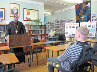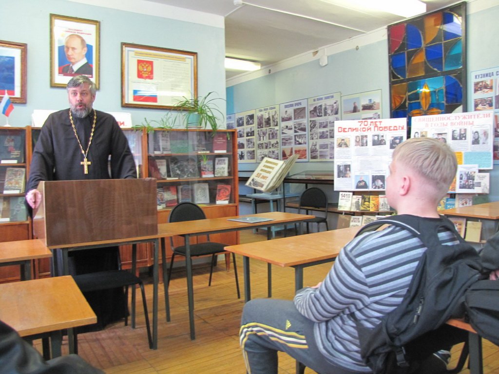 31 марта в библиотеке Яхромского аграрного колледжа состоялась беседа студентов с настоятелем Ильинского xрама села Синьково протоиереем Валерием Клюсовым. Отец Валерий рассказал ребятам о роли, которую сыграла Русская Православная Церковь в Великой Отечественной войне.