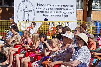 Днем на центральной площади Волоколамска состоялось театрализованное представление о жизни равноапостольного князя Владимира и праздничный концерт. Участников концерта приветствовал игумен Серафим.