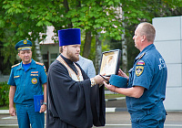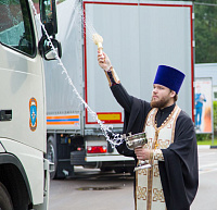 27 июля из Ногинского 179 Спасательного центра МЧС России отправилась очередная автомобильная колонна МЧС с грузом гуманитарной помощи для жителей Донецкой и Луганской областей. Гуманитарный груз состоит из школьной мебели, канцтоваров и оргтехники. В проводах колонны приняли участие помощник благочинного Богородского округа, настоятель храма блж. Матроны Московской г. Ногинска священник Александр Анохин и заместитель главы района Вадим Рейтер. Отец Александр передал старшему сводному колонны подполковнику Вадиму Молеву икону святителя Николая и благословил участников поездки.