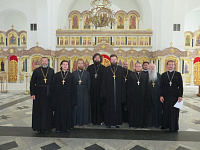 27 июля в приходском доме Богоявленского храма г. Химок под председательством благочинного Химкинского церковного округа протоиерея Артемия Гранкина прошло собрание духовенства Химкинского благочиния. До сведения духовенства были доведены циркуляры и распоряжения митрополита Ювеналия. С докладом о состоянии дел в православной гимназии имени святителя Филарета Московского выступил настоятель Филаретовского храма, духовник гимназии протоиерей Димитрий Григорьянц.