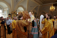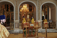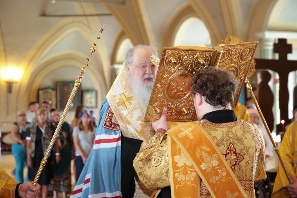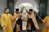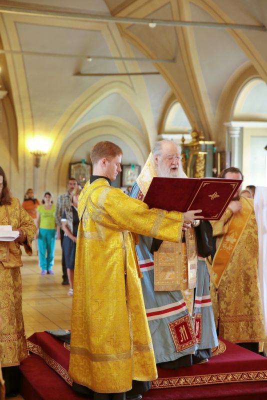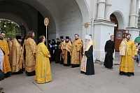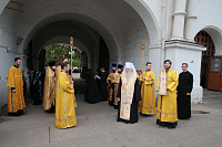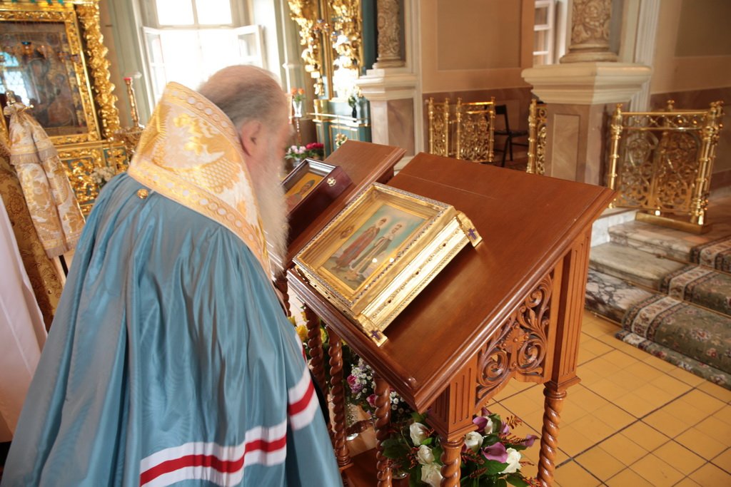 Мы имеем сегодня огромную радость, т. к. в нашу древнюю обитель прибыли мощи святого князя Владимира и княгини Ольги. До 6 августа, праздника святых страстотерпцев князей Бориса и Глеба, сыновей князя Владимира, мощи будут находиться в этой обители в течение всего дня для благочестивого поклонения паломников. Затем они отправятся в благочиния Московской епархии. Мы имеем сегодня и утешение, и духовную радость встретить эти святые мощи и совершить перед ними молебен, в котором будем просить, чтобы Господь предстательством святого князя Владимира и святой равноапостольной великой княгини Ольги благословил всех нас и исполнил во благих наши прошения. Пусть Господь хранит эту святую обитель и всех, кто будет паломничать в наш монастырь, исполняя их молитвы и прошения. Аминь!».