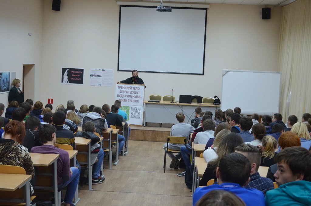 28 сентября в актовом зале железнодорожного колледжа г. Ожерелье благочинный церквей Каширского округа священник Валерий Сосковец прочитал лекцию, посвященную теме трезвости, для учащихся третьего курса.