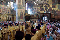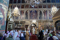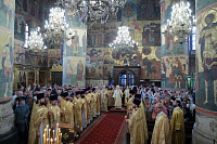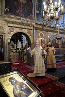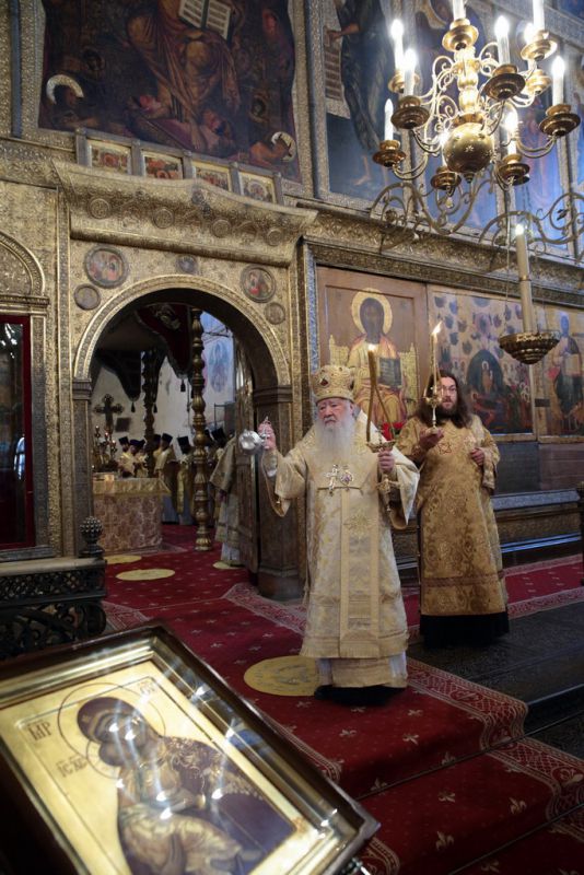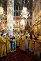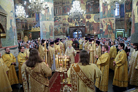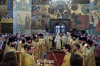 После богослужения и поклонения Кресту было совершено молебное пение у гробницы святителя Киприана. Затем митрополит Ювеналий обратился к участникам праздничного богослужения с архипастырским словом:
