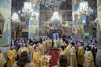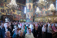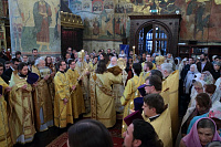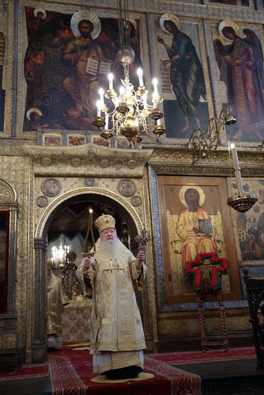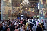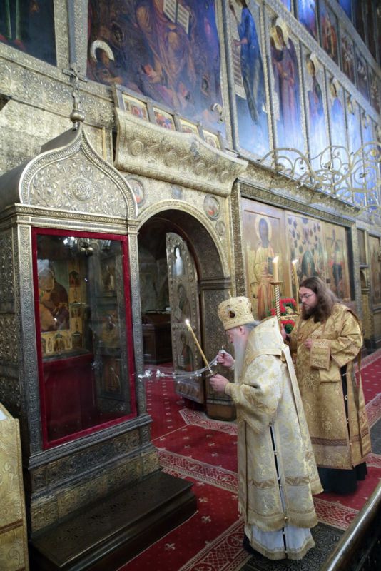 Мы сегодня продолжаем празднование Воздвижения Креста Господня. Воспеваем страдания Христовы и воскресение Его, потому что это смысл нашей христианской жизни: совершая земное поприще, мы готовим себя ко всеобщему воскресению и в надежде на Божие милосердие к нам в Царствии Небесном. В 1406 году скончался святитель Киприан, 30 лет связанный с Русской Православной Церковью, управляя ею в сложные времена истории нашей земли. Но никакие трудности не помешали ему — его благочестию, его ревности о Господе. В этот первосвятительский период много было сделано для просвещения, для строительства храмов и монастырей. Его цельбоносные мощи, почивающие рядом с его приемником — святителем Фотием, напоминают нам, что и сегодня он наш небесный покровитель и предстатель пред Господом и Спасителем нашим. И сегодня еще мы отмечаем среди множества святых память святой мученицы Людмилы Чешской. Многие из вас находящихся сегодня в храме носят это святое имя и причастились святых Христовых Таин. Я горячо и сердечно поздравляю вас с этим праздником — днем ангела, с принятием святых Христовых Таин, как и всех, кто сегодня сподобился этого Таинства.