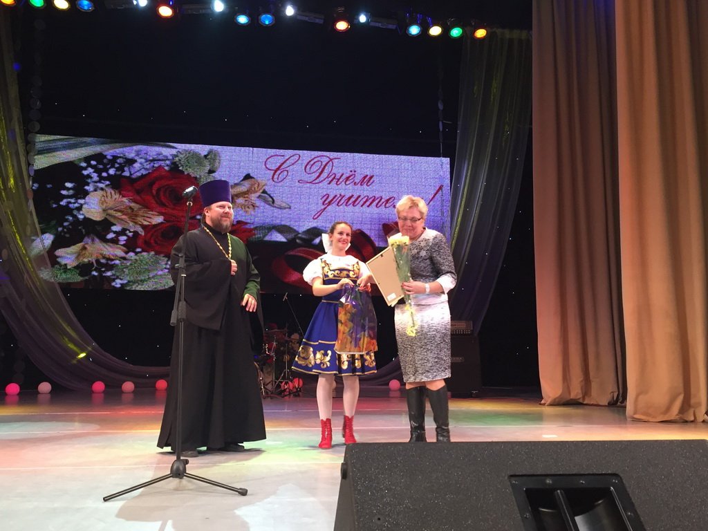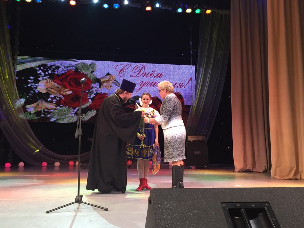 30 сентября в Чеховском районном культурно-творческом центре «Дружба» состоялся торжественный концерт, посвященный Дню учителя. В зале собрались руководители Чеховского района, депутаты района и муниципальных образований, руководители и учителя школ, преподаватели творческого и спортивного внеклассного воспитания. Собравшихся приветствовали глава Чеховского района С. В. Юдин, депутат Московской областной Думы В. С. Крымов, начальник управления образования Чеховского района Е. Н. Толмачева. От имени духовенства Чеховского церковного округа гостей праздника приветствовал благочинный священник Александр Сербский. Он вручил грамоты Чеховского благочиния усердным труженикам на ниве духовно-нравственного образования и воспитания, а также памятный подарок начальнику управления образования Чеховского района Е. Н. Толмачевой. В торжестве принял участие ответственный за религиозное образование и катехизацию в Чеховском благочинии протодиакон Сергий Гайдаш. Праздник завершился концертом, который подготовили коллективы управления образования Управления по культуре, искусству и работе с молодежью Чеховского района.