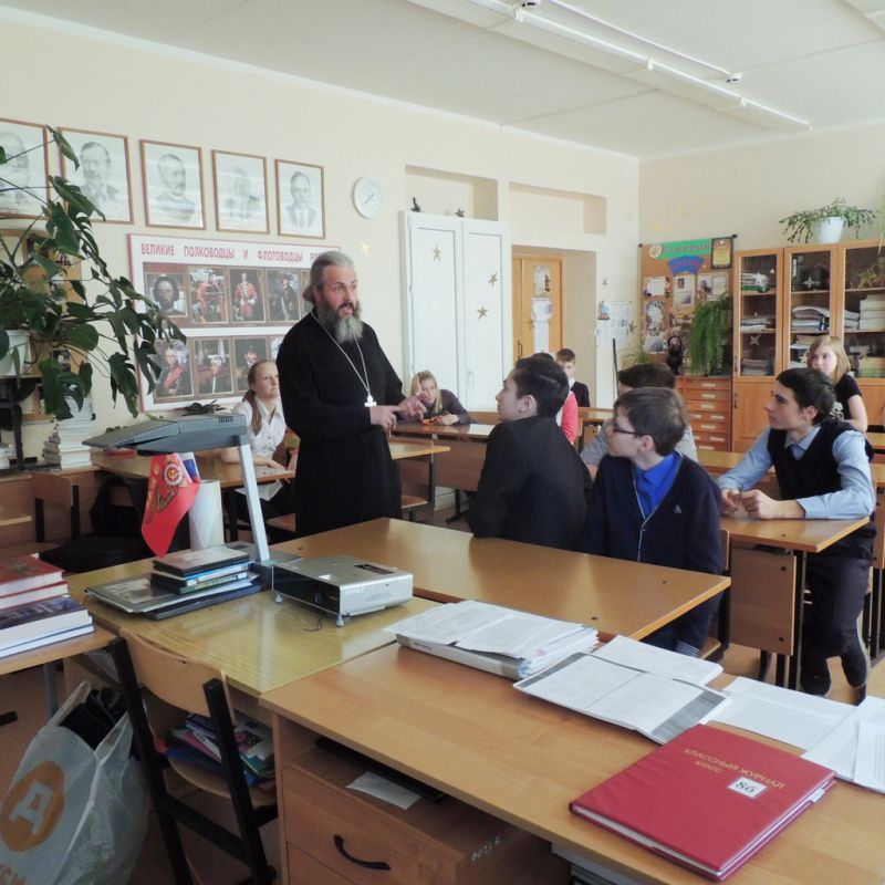 30 октября, в рамках программы по духовно-нравственному воспитанию подростков, в 8-ом классе средней школы села Рождествено прошел урок, посвященный духовному развитию личности и взаимоотношению в детско-юношеском коллективе. Урок провел клирик Христорождественского храма села Рождествено священник Сергий Ухов.