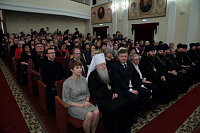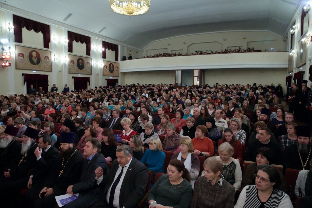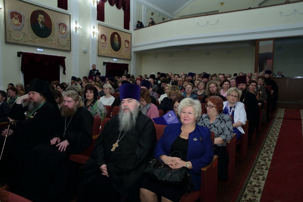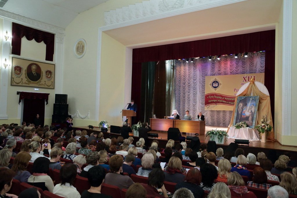 Приветствую Вас на открытии ежегодных областных Рождественских образовательных чтений. Рождественские образовательные чтения — это церковно-общественный форум в сфере образования, культуры, социального служения и духовно-нравственного просвещения. Сегодня в нашей конференции впервые принимают участие представители Министерства культуры, Министерства здравоохранения, Министерства физической культуры и спорта. Тема рождественских чтений этого года — „Традиции и новации: культура, общество, личность“. Эта тема не случайна. Современная культура России — это и наше образование, и наша литература, и наше отношение к родителям, к своей семье, к своему Отечеству, к другим народам и странам. Это наши духовные ценности и традиции. И формат рождественских чтений способствует углубленному обсуждению и осмыслению этих явлений с православной точки зрения.