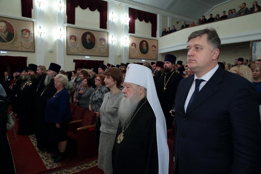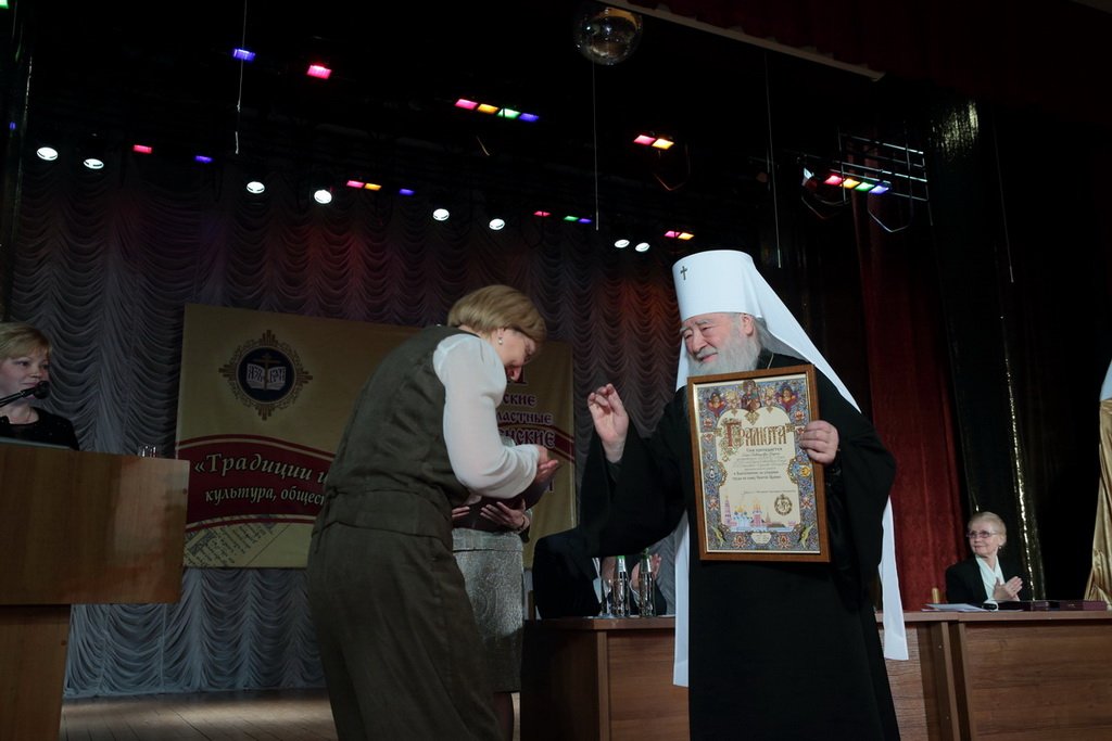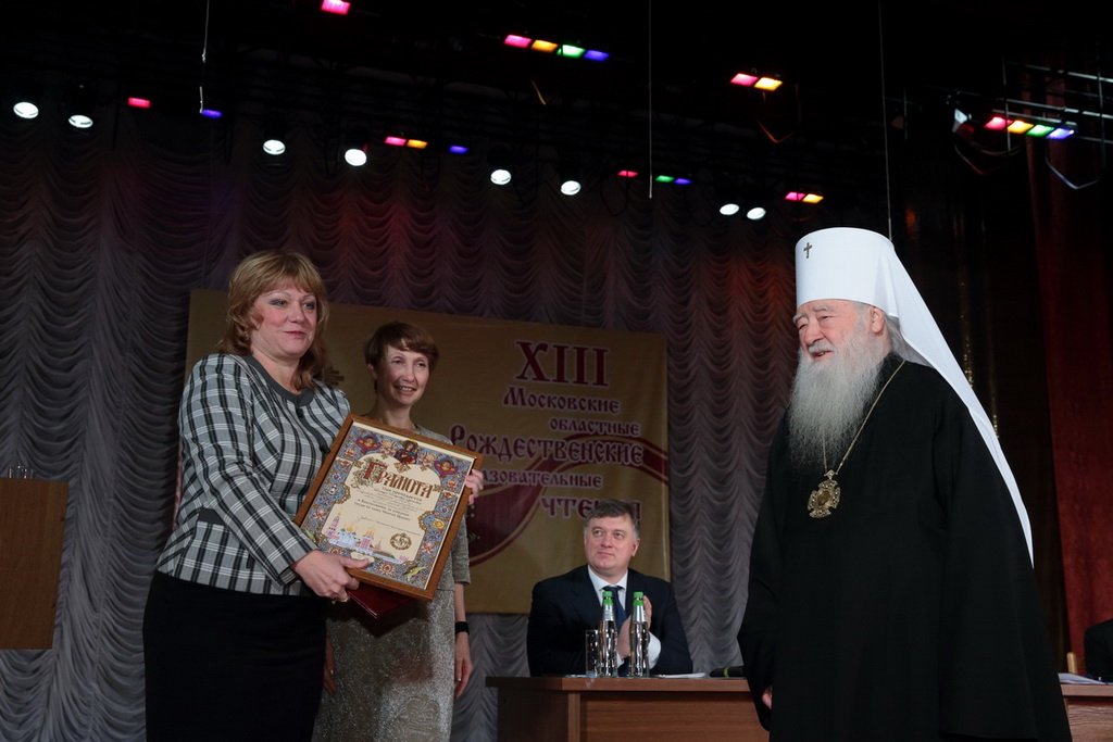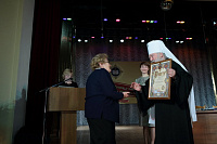 После выступления министра митрополит Ювеналий и М. Б. Захарова наградили пятерых лауреатов регионального этапа всероссийского конкурса в области педагогики, работы с детьми и молодежью до 20 лет «За нравственный подвиг учителя» грамотами.