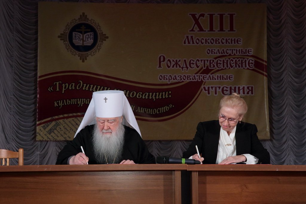 27 ноября в доме культуры «Павлово-Покровский» г. Павловский Посад состоялось открытие XIII Московских областных Рождественских образовательных чтений, посвященных теме «Традиция и новации: культура, общество, личность» и подписание договора о сотрудничестве между Московской епархией и Ассоциацией педагогов Московской области «Преподаватели Духовно-нравственной (православной) культуры».