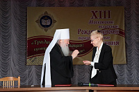 Ведущий кратко рассказал о деятельности Ассоциации педагогов Московской области «Преподаватели Духовно-нравственной (православной) культуры», после чего митрополит Ювеналий и президент Ассоциации Л. Л. Шевченко подписали договор о сотрудничестве.