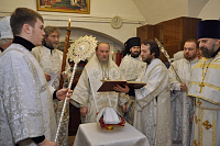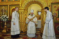 За Божественной литургией Его Высокопреосвященству сослужили благочинный церквей Красногорского округа протоиерей Константин Островский, благочинный церквей Истринского округа протоиерей Димитрий Подорванов, настоятель Никольского храма священник Владимир Крюков, клирики Красногорского и Химкинского благочиний.
