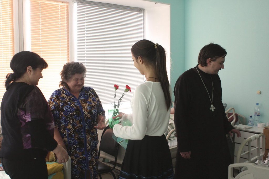 29 ноября в центральной районной больнице г. Серпухова священник Евгений Кудашов и участники православного клуба «Трилистник» храма Богоявления поздравили пациенток с Днем матери.