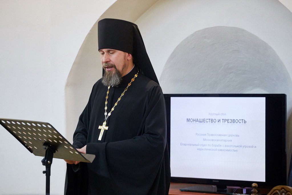 8 декабря в рамках XIII Московских областных образовательных Рождественских чтений в Высоцком монастыре г. Серпухова состоялся круглый стол «Монашество и трезвость», подготовленный Епархиальным отделом по борьбе с алкогольной угрозой и наркотической зависимостью. С приветственным словом к участникам круглого стола обратился игумен Высоцкого монастыря, благочинный монастырей Московской епархии епископ Серпуховской Роман. На круглом столе прозвучали доклады: председателя Епархиального отдела по борьбе с алкогольной угрозой и наркотической зависимостью игумена Серафима (Николина) «Монашество и трезвость»; настоятеля