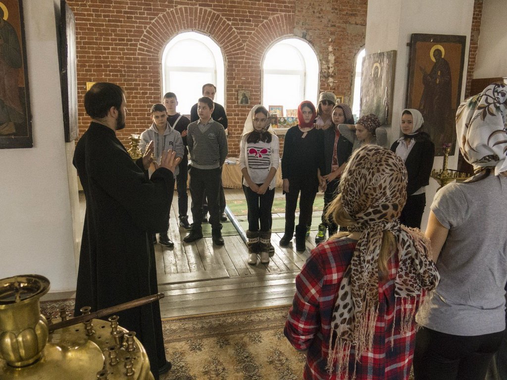 Встреча настоятеля Крестовоздвиженского храма поселка Мишеронский с учащимися промышленно-экономического техникума г. Рошали