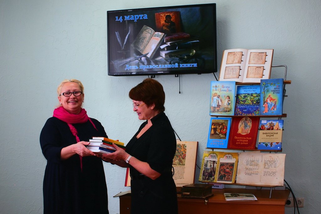 26 февраля в детской библиотеке поселка Тучково было проведено интегрированное занятие «Библиотечный час». Сотрудники библиотеки подготовили книжную выставку и электронную презентацию на тему истории создания православной книги, рассказали о первой печатной книге «Апостол» и первопечатнике Иване Федорове. Преподаватели воскресной школы при Успенском храме поселка Тучково показали ребятам старинные книги: Псалтирь, Часослов, Минею. Второй частью программы было знакомство с произведениями русского писателя В. Крупина, лауреата Патриаршей литературной премии святых равноапостольных Кирилла и Мефодия. В дар библиотеке от храма были переданы книги — новинки православной литературы.