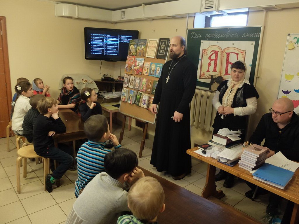 11 и 12 марта в воскресной школе Даниловского храма в Нахабино прошли уроки, на которых младшие ученики познакомились с историей праздника, сравнили старинные книги с новыми, поговорили о слове и бережном отношении к книгам. Ученики старшей школы посмотрели презентацию о Дне православной книги, увидели старинные богослужебные издания, побеседовали с настоятелем Даниловского храма священником Олегом Холзиневым о роли книгопечатания в истории Русской Православной Церкви.