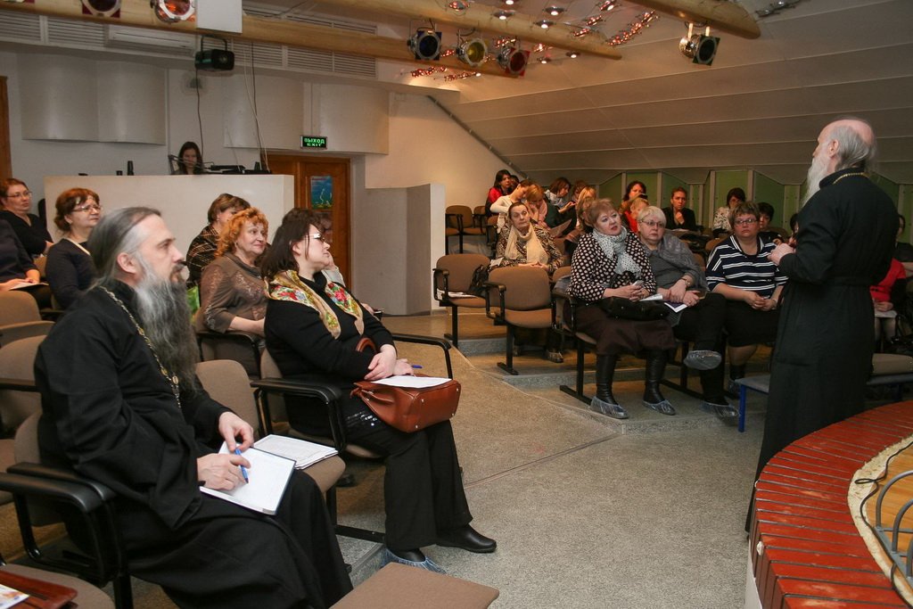 29 марта в воскресной школе Покровского храма села Кудиново прошел семинар для заместителей директоров по воспитательной работе и психологов общеобразовательных школ Ногинского района «Профилактика абортов». Среди участников встречи был ответственный за вопросы семьи, материнства и детства в Богородском благочинии протоиерей Сергий Уваркин. Перед началом семинара настоятель протоиерей Виктор Дорофеев рассказал об истории Покровского храма и этапах его реставрации, о нынешней жизни прихода. Педагоги во главе со старшим инспектором управления образования Ногинского района Натальей Лисициной побывали на колокольне, в приходском музее и классе обучения звонарей. На семинаре, который провели отец Виктор и член приходской молодежной группы Виктория Шишканова, обсуждались духовно-нравственные и социально-психологические аспекты проблемы абортов.