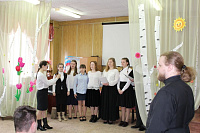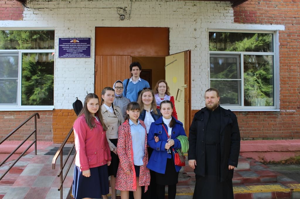 29 апреля группа помощи при соборе Всех святых, в земле Русской просиявших, г. Домодедово имени святителя Луки (Войно-Ясенецкого) во главе с клириком собора диаконом Алексием Зверобоевым и другими волонтерами посетили детей и подростков Кутузовской школы-интерната для обучающихся с ограниченными возможностями здоровья. После того, как отец Алексий приветствовал присутствующих, хор исполнил церковные песнопения и произведения светских авторов.