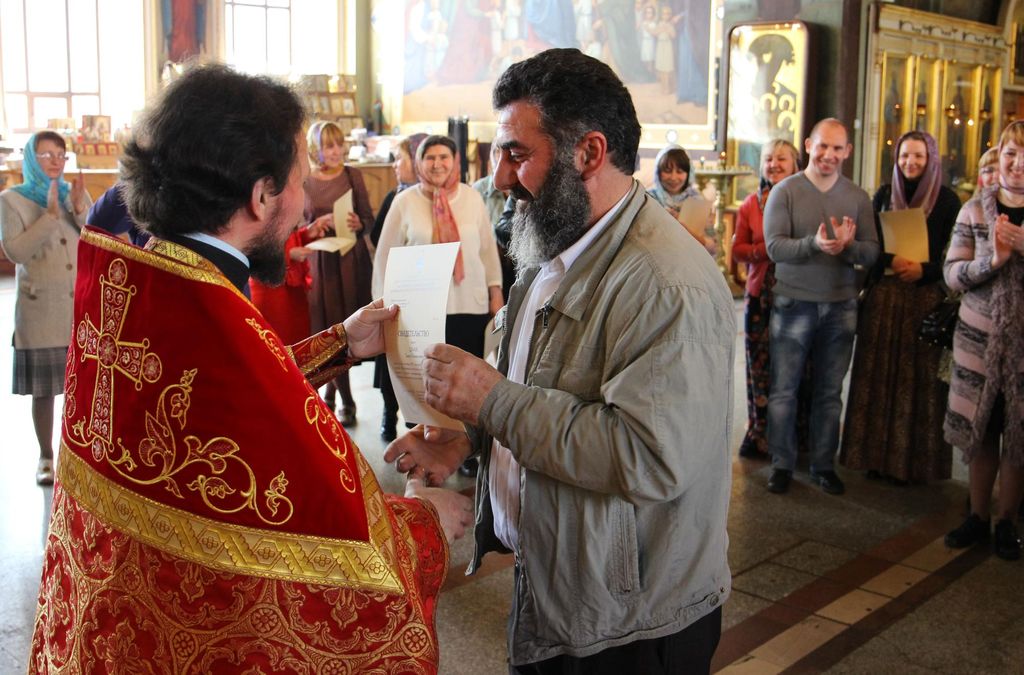 30 апреля в Богородицерождественском соборе г. Орехово-Зуево состоялся выпускной акт для слушателей Миссионерско-катехизаторских курсов Орехово-Зуевского отделения. По окончании благодарственного молебна, который возглавил благочинный Орехово-Зуевского церковного округа протоиерей Андрей Коробков, ответственный за религиозное образование и катехизацию священник Владислав Решетников вручил выпускникам свидетельства о присвоении квалификации «Приходской миссионер-катехизатор и работник с молодежью». Учащиеся, прошедшие полный образовательный курс, получили свидетельство о присвоении квалификации «Приходской социальный работник». По окончании акта в приходском духовно-просветительском центре состоялся праздничный концерт, подготовленный силами выпускников миссионерско-катехизаторских курсов.