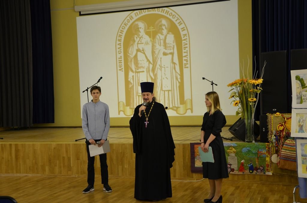 19 мая настоятель Благовещенского храма деревни Матвеевское священник Андрей Саломасов провел урок в прогимназии поселка Романцево на тему славянской письменности. Ребятам было показано богослужебное Евангелие и рассказано о первопечатнике Иоанне Федорове.