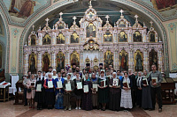28 мая в храме Преображения Господня мкр. Саввино в честь окончания Библейско-богословских курсов им. преподобного Сергия Радонежского был совершен благодарственный молебен. Настоятель храма протоиерей Виталий Кулешов, преподаватели курсов протоиерей Алексий Малевич, священники Павел Кузнецов и Антоний Овчинников поздравили слушателей, окончивших двухгодичный образовательный курс, а также тех, кто перешел на второй год обучения.