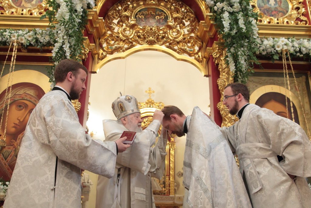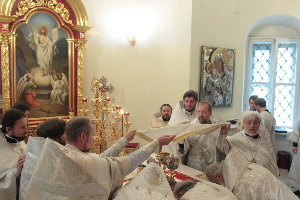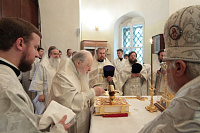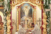 За богослужением была совершена священническая хиротония диакона Владимира Чиркина и диаконская хиротония Максима Смирнова. На малом входе благочинный Шатурского церковного округа священник Владислав Решетников был удостоен права ношения камилавки и наперсного креста.