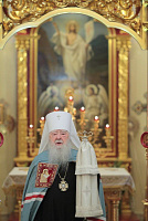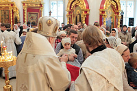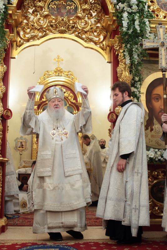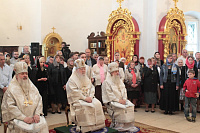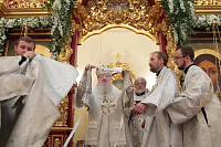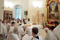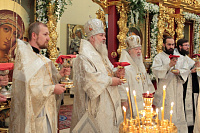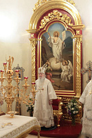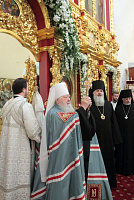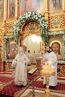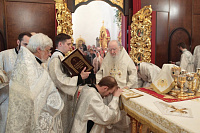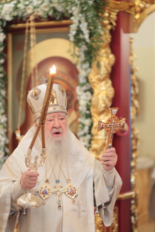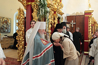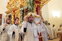 Затем с архипастырским словом к духовенству и молящимся обратился митрополит Ювеналий: «Братья архипастыри, дорогой отец благочинный архимандрит Нестор, настоятель храма отец Александр, всечестные отцы, дорогие братья и сестры! Мы встречаемся с вами в период Петрова поста. Некоторые, тяготясь многочисленными постами и постными днями, говорят, что этот пост не столь серьезный и не столь важный, тем более, что, по сравнению, скажем, с Великим постом там есть послабления, можно в пищу рыбу употреблять. Но мне хочется обратить ваше внимание на нашу человеческую природу, склонную ко греху. И вот, чтобы мы духовно совершенствовались, чтобы мы стремились к святости и готовились к Царствию Божию, Святая Церковь, как ласковая заботливая мать, печется о нашем спасении, предлагая нам покаяние. Чем для нас важен этот пост в честь апостолов Петра и Павла? Когда мы честно анализируем свою жизнь, то видим, что в этих двух апостолах мы находим и свою судьбу, и потому можем им подражать. Возьмите апостола Петра — бросил мрежи, оставил свою профессию рыбака и пошел за Христом, был всегда с Ним и отличался горячей ревностью, преданностью Спасителю. Но и он тоже был человек, и Христос ему предсказал, что в момент испытания он от Него отречется. А тот не мог представить даже, что это может быть с ним, и говорил Спасителю: „Я душу мою положу за Тебя“ (Ин. 13:37). Когда Христа в Гефсиманском саду по предательству Иуды взяли воины, апостол Петр показал свою слабую человеческую природу, когда служанка ему сказала: „И ты был с Иисусом Галилеянином“ (Мф. 26:69), он отрекся перед всеми, сказав: „Не знаю, что ты говоришь“ (Мф. 26:70). А потом и другие говорят: „И этот был с Иисусом Назореем“ (Мф. 26:71). Тогда он уже с клятвой отрекается от Христа (Мф. 26:72). А когда апостол Петр увидел издали Христа, идущего на допрос к Каиафе, то вышел и горько плакал (см.: Лк. 22:62). Это были слезы покаяния. Мы знаем, что по Своему милосердию и любви, Христос, зная нашу природу, не отверг его, но принял и вновь удостоил быть своим апостолом (см.: Ин. 20:15–22).