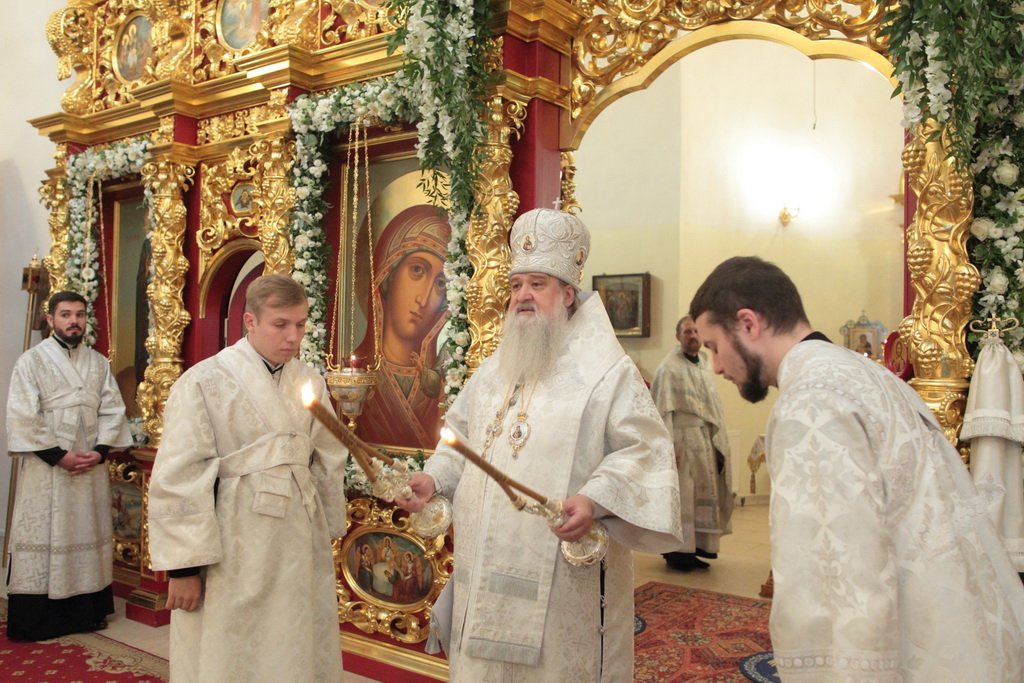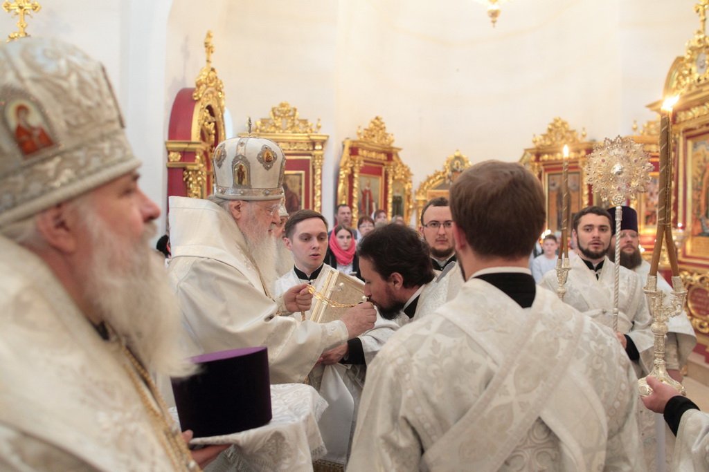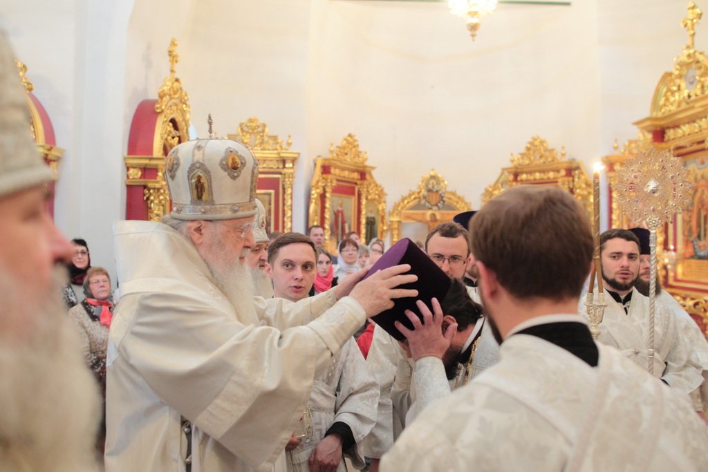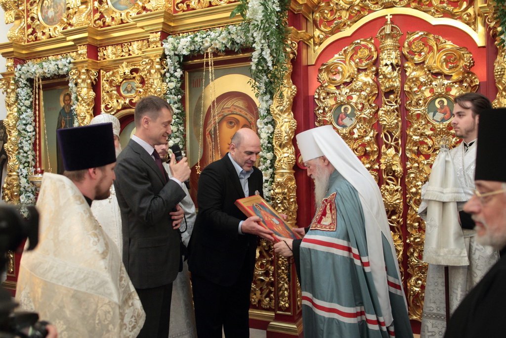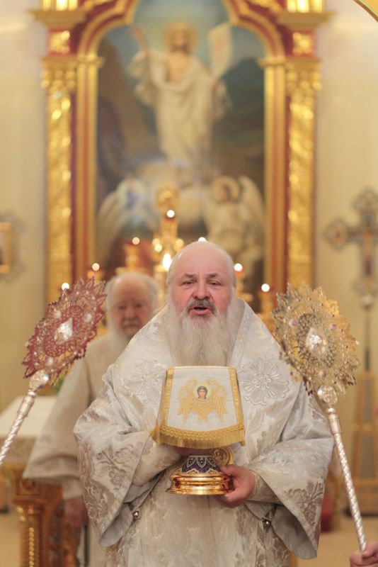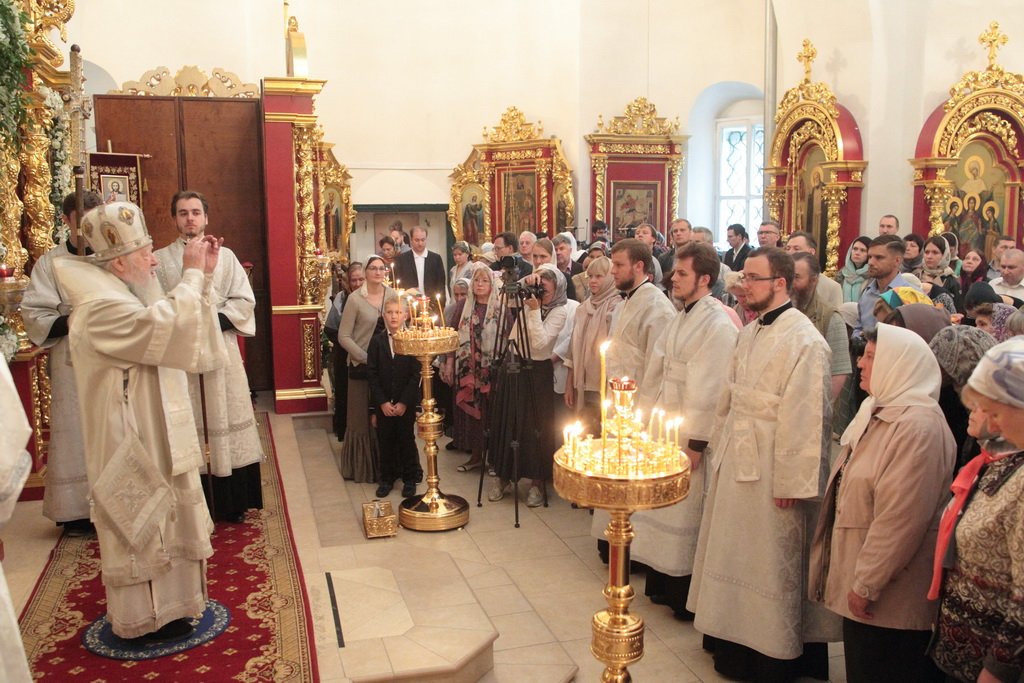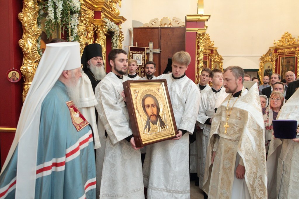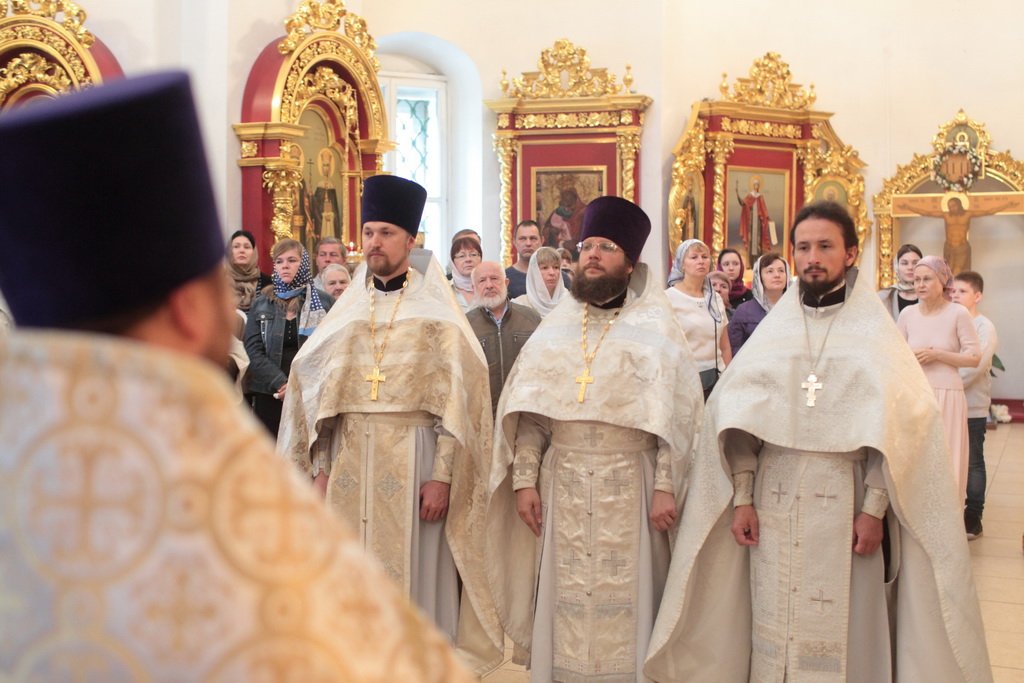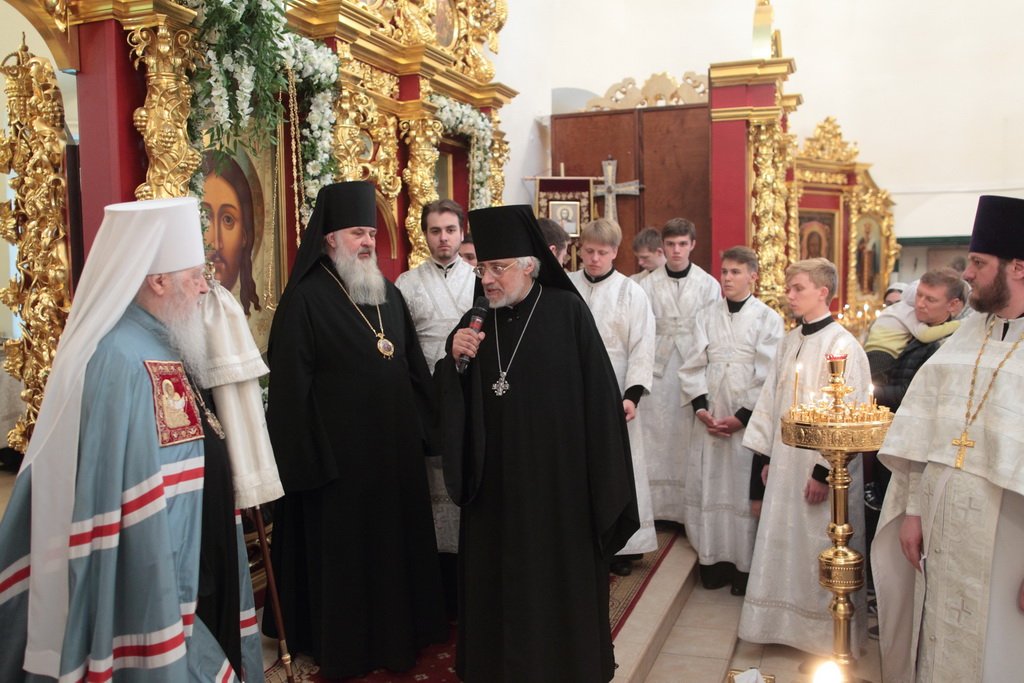 А апостол Павел? Может быть, много сейчас в нашей стране таких, которые не знают Христа, которые гнали Его, которые, может быть, храмы разрушали и убивали служителей Церкви. Когда он шел в Дамаск, внезапно осиял его свет с неба. Он упал на землю и услышал голос, говорящий ему: „Савл, Савл! что ты гонишь Меня?“ Он спросил: „Кто Ты, Господи?“ и услышал ответ: „Я Иисус, Которого ты гонишь. Трудно тебе идти против рожна“ (см.: Деян. 9:4–5). Мы знаем, что после этой встречи он становится ревностным учеником и проповедником Христа Спасителя. Так и в наше время многие Савлы соделались Павлами. Сейчас отец Нестор вспоминал судьбу этого древнего прекрасного храма. У меня язык не поворачивается, чтобы озвучить то, что с ним было. Сейчас мы видим дивный иконостас. А тогда, может быть, он был еще красивее, еще богаче. Его демонтировали, распилили и здесь, на этом месте сжигали. До 1991 года храм был в поругании. Мы вспоминаем об этом потому, что в этом году исполняется 100 лет с начала гонений на Русскую Православную Церковь. Это было не только идеологическое сопротивление вероучению, это было желание физически уничтожить Русскую Православную Церковь — как храмы, так и служителей Церкви. Теперь многие говорят: „Народу нужно покаяние, все должны покаяться“. Да, нужно каяться и в этом, хотя мы сами и не разрушали храмы, но нужно покаяться за грехи отцов и дедов наших, чтобы впредь не повторилось то, что они сделали. Как нужно каяться? Не просто прийти на исповедь и сказать: „Я каюсь за своего деда, или прадеда, или отца“. Нужно принести плоды покаяния: такие, как мы видим сегодня. Я знаю, что эта малая община не в состоянии была бы восстановить в такой красоте и в таком величии этот храм, если бы не нашлись жертвователи, которые в знак покаяния отдали Церкви свои таланты, деньги. Это один пример.