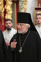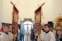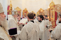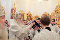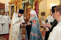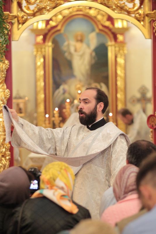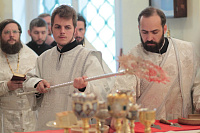 Богослужебные песнопения исполнял мужской состав молодежного хора Георгиевского собора под управлением Павла Карпова.
