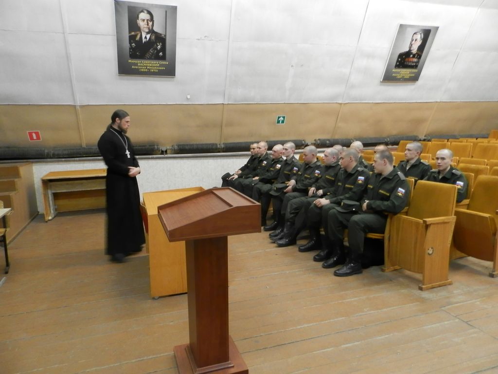 23 июня настоятель Борисоглебского храма священник Алексий Трошин, ответственный в благочинии города Коломны за взаимодействие с Вооруженными силами и правоохранительными учреждениями, провел беседу «Вера и Победа в Великой Отечественной войне» с военнослужащими срочной службы войсковой части № 43556.