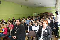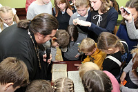 28 сентября клирик Преображенского храма микрорайона Саввино города Балашиха священник Павел Кузнецов принял участие в акции «Духовное и культурное наследие России», проходившей во дворце творчества детей и молодежи микрорайона Железнодорожный. На мероприятие собрались более 80 учащихся из школ и творческих объединений города. В рамках акции для ребят были организованы виртуальные экскурсии по России. Отец Павел познакомил школьников с православными праздниками и показал древние богослужебные книги из собрания Преображенского храма.