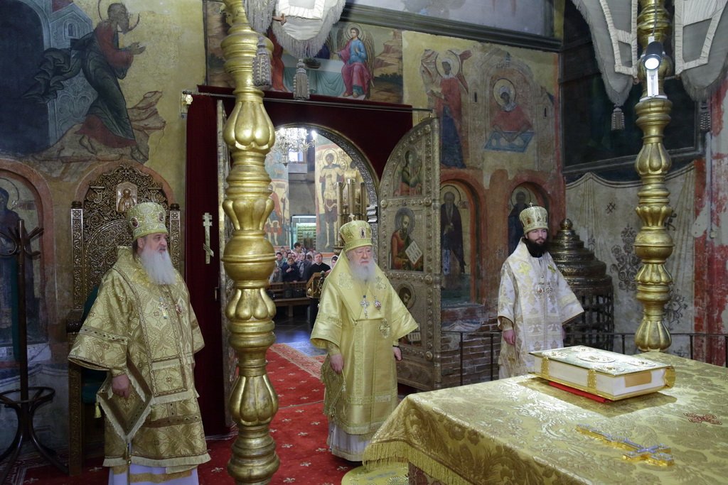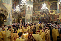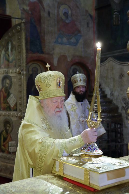 29 сентября, в день памяти святителя Киприана, Митрополита Московского и всея Руси, и мученицы Людмилы, княгини Чешской, по благословению Святейшего Патриарха Кирилла, митрополит Ювеналий совершил утреню и Божественную литургию в Патриаршем Успенском соборе Московского Кремля.