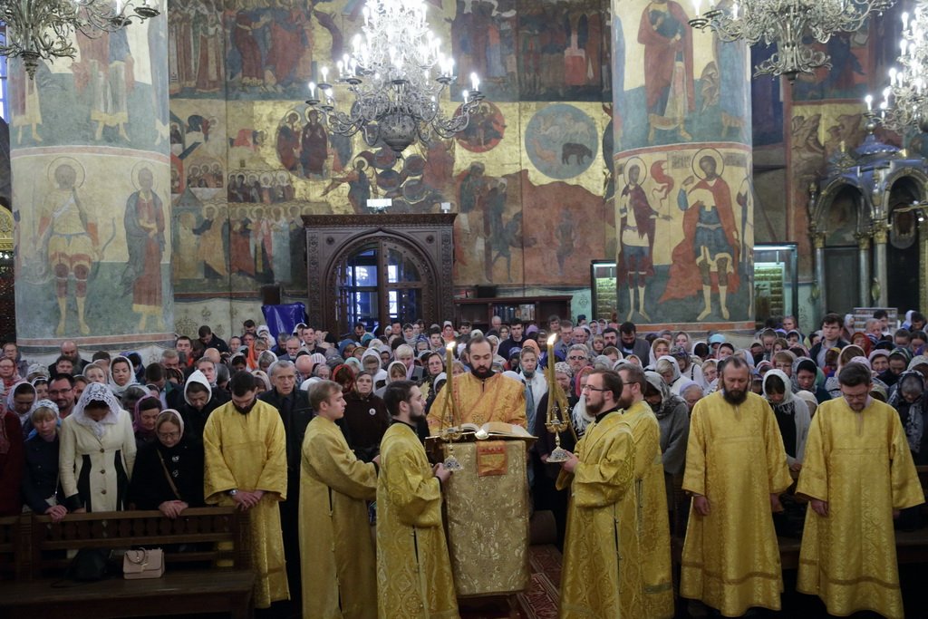 Проповедь по запричастном стихе произнес пресс-секретарь Московской епархии священник Александр Сухарев.