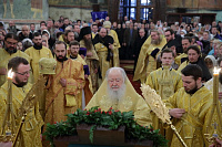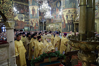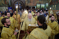 Его Высокопреосвященству сослужили епископы Серпуховской Роман и Луховицкий Петр, секретарь Патриарха Московского и всея Руси по городу Москве протопресвитер Владимир Диваков, благочинные и духовенство Московской епархии.