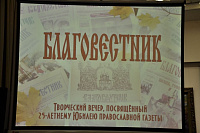 28 октября в культурном центре «Дом Озерова» состоялся юбилейный вечер, посвященный 25-летию православной газеты «Благовестник». В мероприятии приняли участие благочинный церквей города Коломны и Коломенского округа епископ Луховицкий Петр, настоятель Успенского кафедрального собора города Коломны протоиерей Николай Качанкин, ректор Государственного социально-гуманитарного университета А. Б. Мазуров, сотрудники и читатели издания. Владыка Петр зачитал поздравительный адрес митрополита Ювеналия и вручил епархиальные награды сотрудникам газеты.
