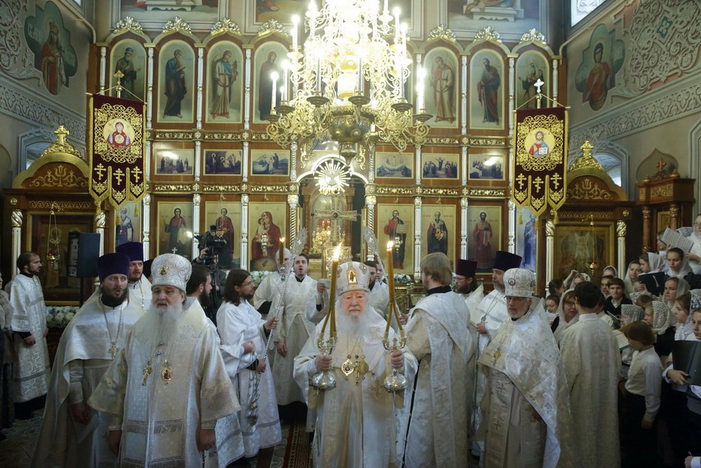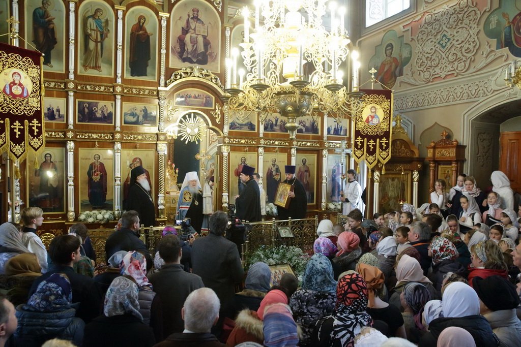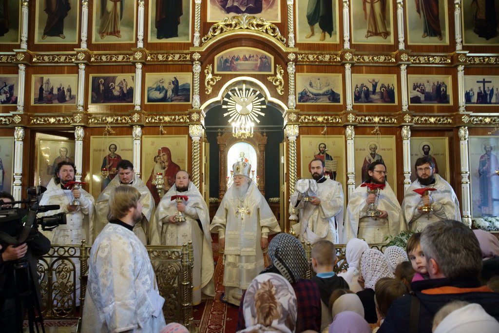 Мы сегодня отмечаем память новомучеников и исповедников Одинцовского благочиния, их двадцать, и в их числе архипастырь, пастыри, монашествующие, миряне, мужчины и женщины. Они являются для нас образцом усердного, верного служения Церкви Божией, они являются молитвенниками перед Господом не только за землю Одинцовскую, но и за всю Русскую Церковь, за весь наш народ. Я очень рад, что Господь сподобил меня сегодня совершить великое освящение этого храма. Никто, наверное, не зная истории, не поверит, что еще вчера здесь были руины, попрание веры нашей, а ныне этот храм — величественный, красивый, восстановленный, — с любовью встречает каждого верующего человека. Я выражаю вам, отец Николай, глубокую благодарность за Ваше самоотверженное усердное служение в этом храме. Приходится только поражаться, как Вам все это удалось сделать. Я знаю, что и отец Нестор не был в стороне, помогая Вам при возрождении этого храма, но, если бы у Вас не было пастырского горения, которое собирало около Вас неравнодушных людей, не удалось бы все это сделать. Я хотел бы поздравить вас всех, возлюбленные братья и сестры, и с освящением храма, и с днем новомучеников и исповедников Одинцовского благочиния, и с тем, что у вас такой замечательный настоятель. На молитвенную память этому святому храму я оставляю изображение Господа и Спасителя нашего Иисуса Христа. Пусть Господь хранит всех вас предстательством и молитвами новомучеников и исповедников Одинцовского благочиния и пребывает всегда со всеми вами. Храни Вас всех Господь, а причастников и причастниц я поздравляю с принятием Святых Христовых Таин».
