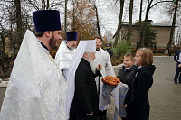 Затем Владыка освятил памятную доску, посвященную священномученику Николаю Соколову и посетил дом причта при
