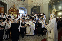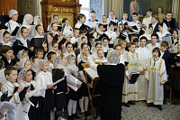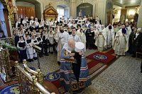 Богослужебные песнопения исполняли хор Георгиевского собора г. Одинцово и сводный детский хор храмов благочиния.
