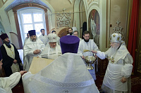 Его Высокопреосвященству сослужили епископ Серпуховской Роман, секретарь Московского епархиального управления протоиерей Михаил Егоров, благочинный Одинцовского церковного округа протоиерей Игорь Нагайцев, почетный настоятель Троицкого храма поселка Назарьево архимандрит Нестор (Жиляев), настоятель Преображенского храма села Крымское протоиерей Николай Бабин, священнослужители Одинцовского благочиния.