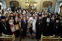 Мне хочется поблагодарить священников и особенно отца Нестора, который сказал, что в нашем храме будет праздноваться день новомучеников и исповедников Одинцовских. Хочется выразить благодарность благочинному отцу Игорю за то, что он продолжил дело отца Нестора и очень сильно нам помог в подготовке этого праздника. Мы сделали небольшие иконки — список с той иконы, которую мы Вам подарили, и все, кто здесь сегодня присутствуют, получат эти иконы с Вашим благословением. Спаси Господи, Владыка, Вас за то, что Вы есть. Многая Вам лета».