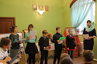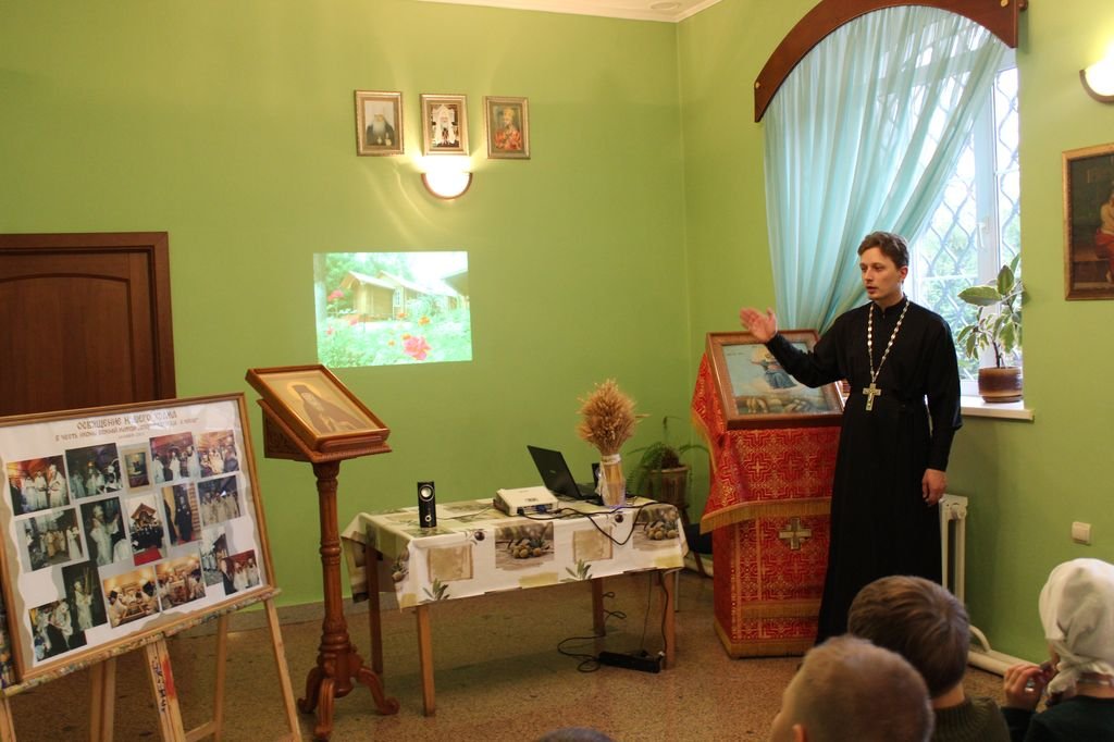 29 октября в воскресной школе храма Преображения Господня прошел тематический урок-концерт, приуроченный к престольному празднику приходского храма в честь иконы Богородицы «Спорительница хлебов». Руководитель школы священник Иоанн Слобжин рассказал детям о преподобном Амвросии Оптинском, а преподаватель Закона Божиего Н.Н. Новикова – об истории образа Божией Матери. Затем отец Иоанн рассказал детям об истории строительства и освящения первого приходского храма. В завершение младшая и старшая группы воскресной школы исполнили подготовленные к празднику песнопения.