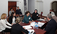Второй день международного конгресса был посвящен работе круглых столов. Круглый стол по теме «Статус объекта всемирного наследия: обременение или преимущество?» проходил в рамках групповой работы по четырем направлениям: органы охраны памятников, музейное сообщество, экспертное сообщество и молодые профессионалы.