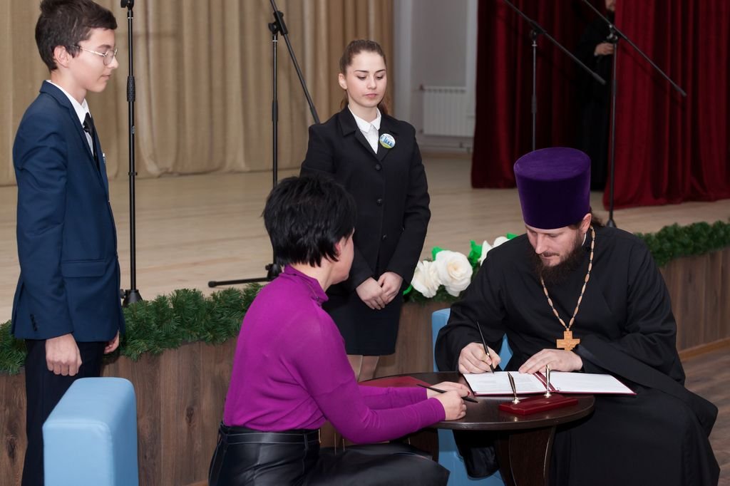 27 ноября в средней школе № 10 г. Домодедово состоялось открытие XV районных Рождественских образовательных чтений, посвященных теме «Нравственные ценности и будущее человечества». В торжественном мероприятии приняли участие депутат Государственной думы, двукратный олимпийский чемпион В. А. Фетисов, глава г. о. Домодедово А. В. Двойных, председатель совета депутатов г. о. Домодедово Л. П. Ковалевский, начальник районного управления образования Е. В. Болмазова, благочинный Домодедовского церковного округа протоиерей Владислав Гусар, духовенство благочиния, директора школ, заведующие детских садов, педагоги, родители и учащиеся. После приветственных слов состоялось подписание обновленного соглашения о сотрудничестве между управлением образования г. о. Домодедово и Домодедовским благочинием. В основной части мероприятия вниманию участников и гостей был представлен опыт совместной работы педагогических коллективов и духовенством благочиния в деле духовно-нравственного просвещения молодежи. Содокладчиками выступили директор средней школы №10 г. Домодедово Н. А. Шматкова, клирик собора Всех святых, в земле Русской просиявших, г. Домодедово диакон Алексий Зверобоев, директор Белостолбовской средней школы Е. А. Ярославская, настоятель храма в честь иконы Божией Матери «Нечаянная Радость» поселка «Санаторий Подмосковье» священник Александр Королев, заместитель директора Ямской средней школы Н.А. Серяпова. После церемонии награждения педагогов и священнослужителей, наиболее активно потрудившихся на поприще духовно-нравственного образования, силами учащихся Белостолбовской средней школы № 10 и Православной гимназии имени прп. Серафима Саровского был представлен праздничный концерт.